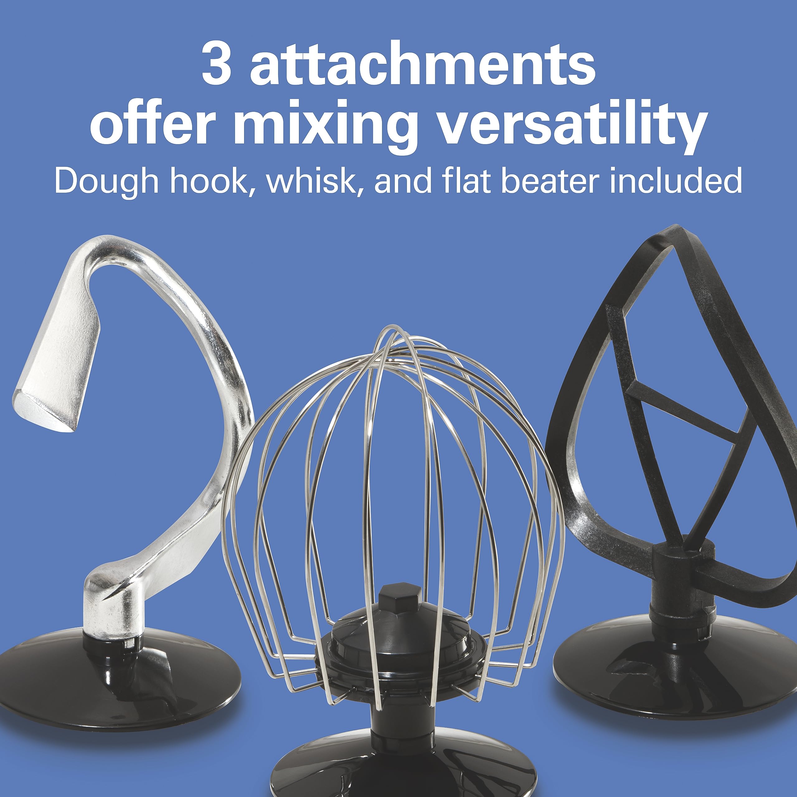 - PROVIDES MIXING VERSATILITY: With 3 stand mixer attachments, this versatile stand mixer can handle any mixing job. It includes a dough hook for making bread, whisk for whipping cream or meringue, and a flat beater for mixing a variety of ingredients.