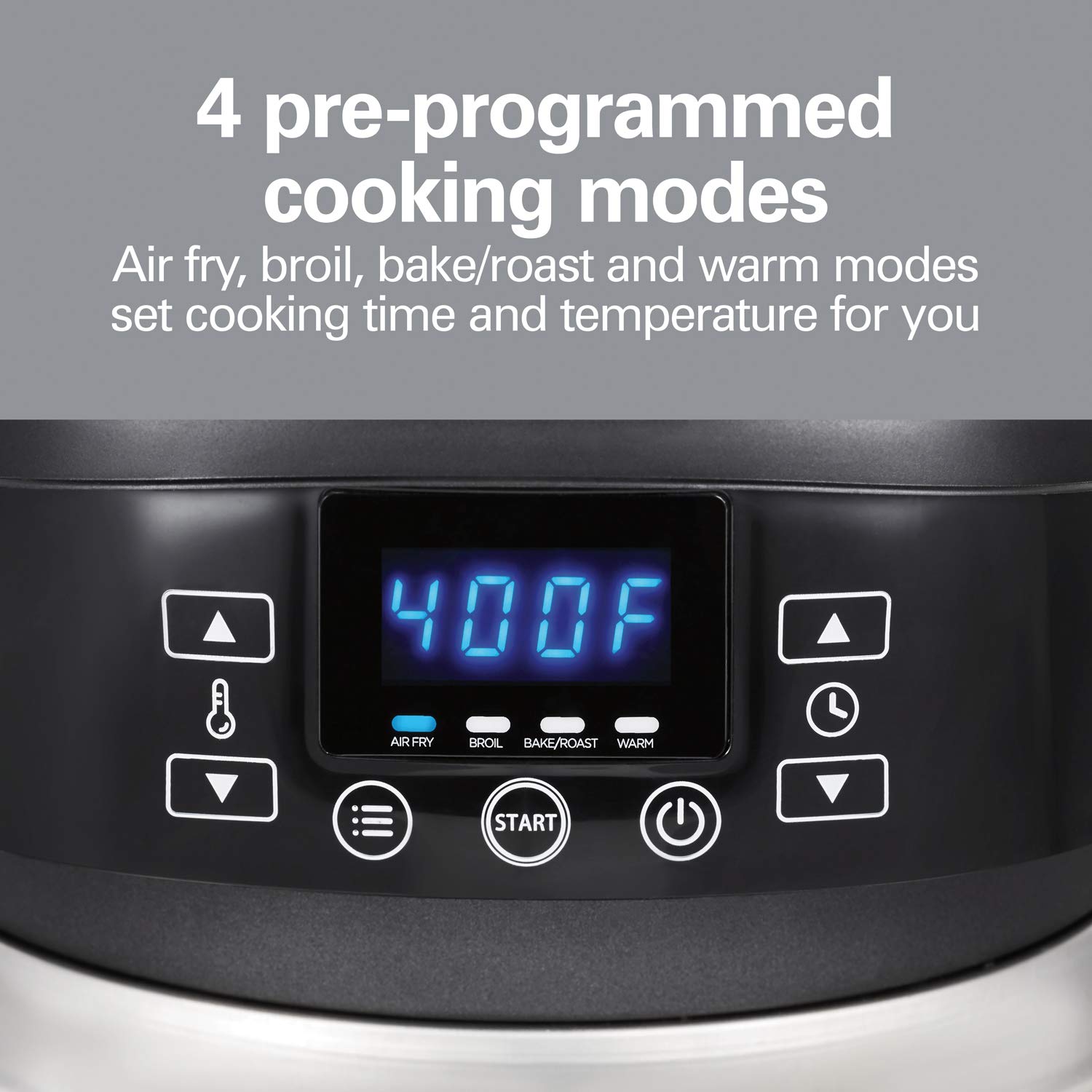 - 4 PRE-PROGRAMMED COOKING MODES: Go from air frying a quick snack to browning a slow-cooked meal any day of the week. The 4 pre-programmed cooking modes of this hot air fryer include air fry, broil, bake/roast and warm.