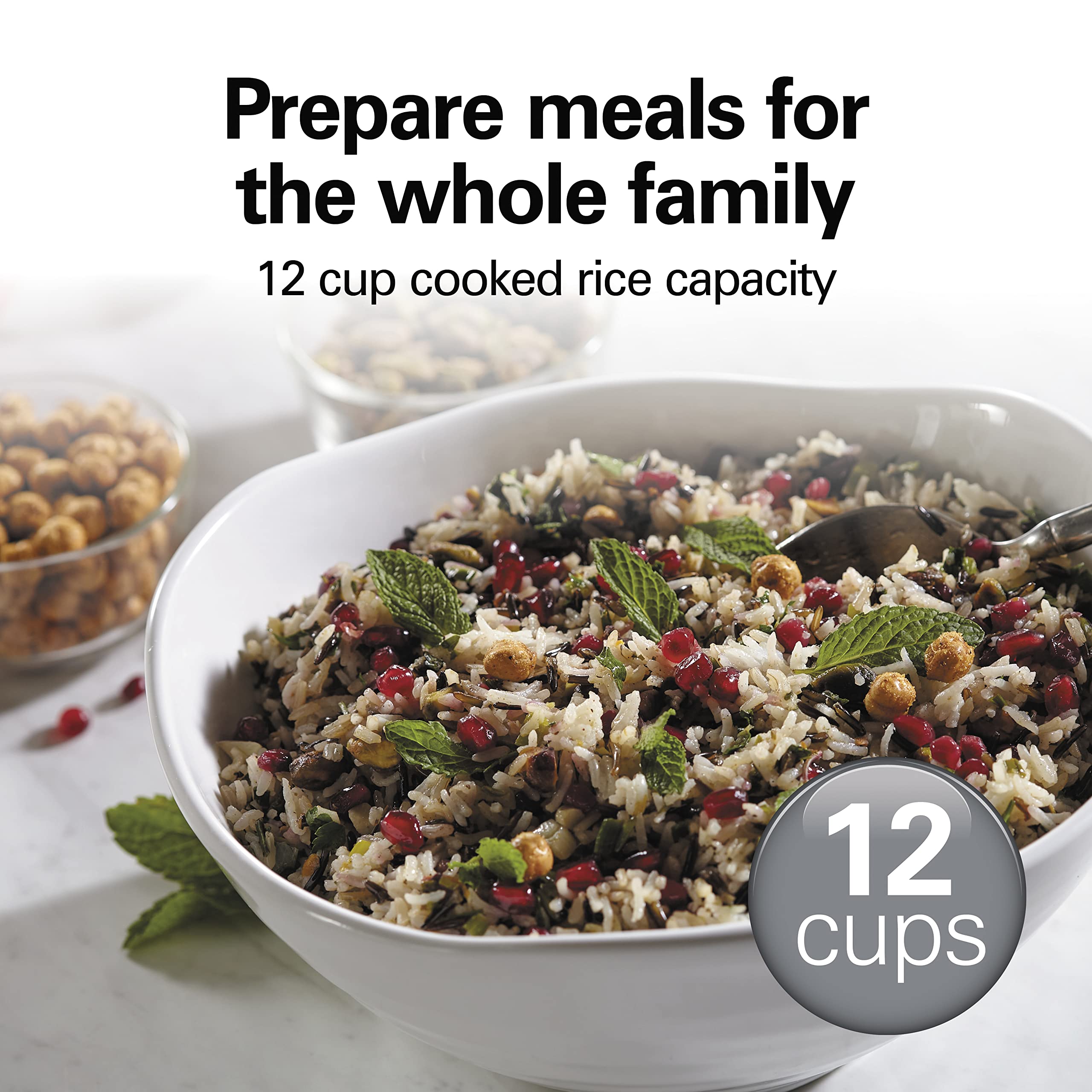 - PREPARE MEALS FOR THE WHOLE FAMILY: The nonstick removable pot of the Hamilton Beach rice cooker is large enough to feed your whole family ā it fits up to 12 cups/3 quarts of everything from cooked rice* and grains to hearty chili, stew or soup.