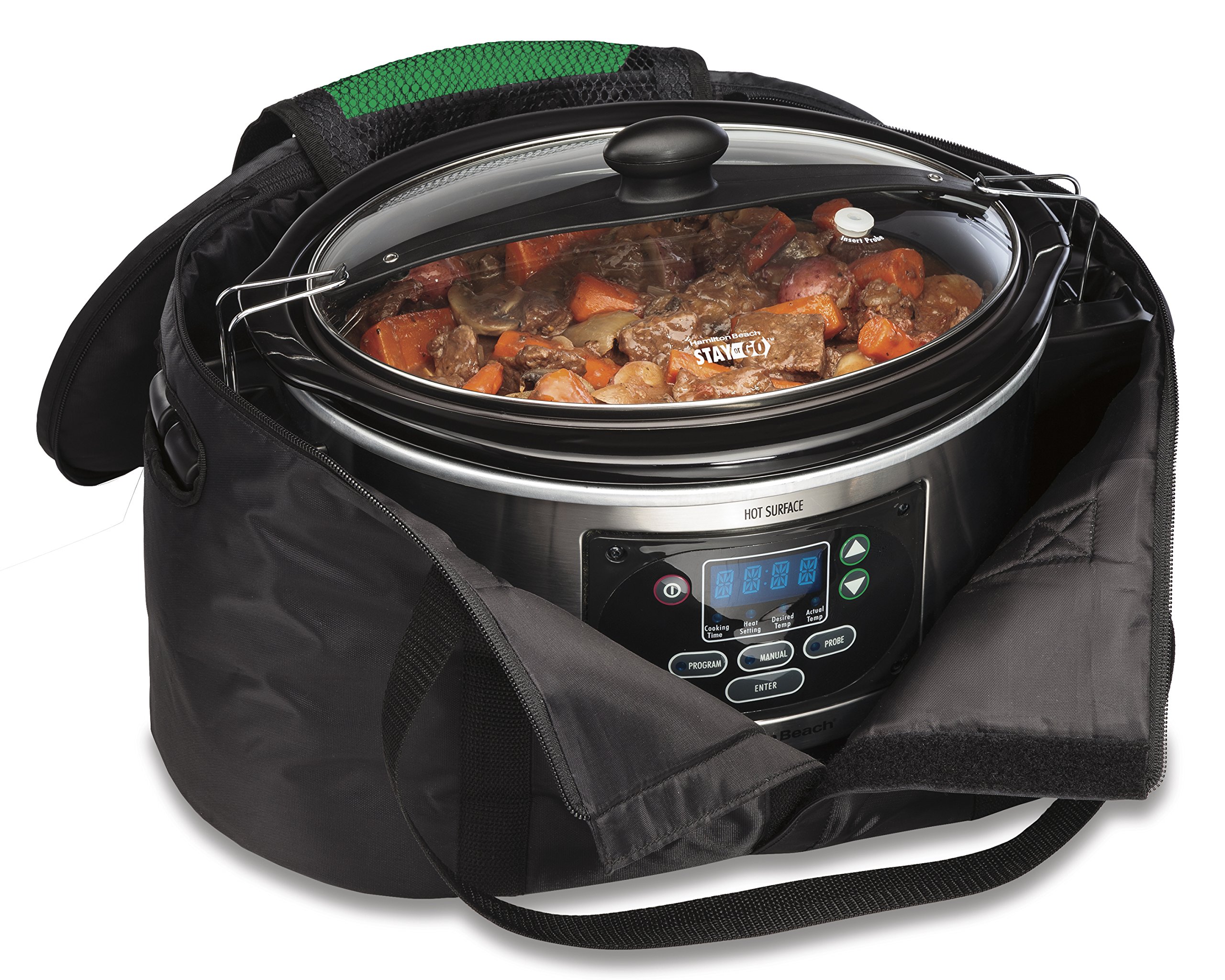 - EASILY TAKE YOUR SLOW COOKER MEALS ANYWHERE: From potlucks to parties, the Hamilton Beach slow cooker bag makes it easy to transport your delicious slow cooker meals from here to there