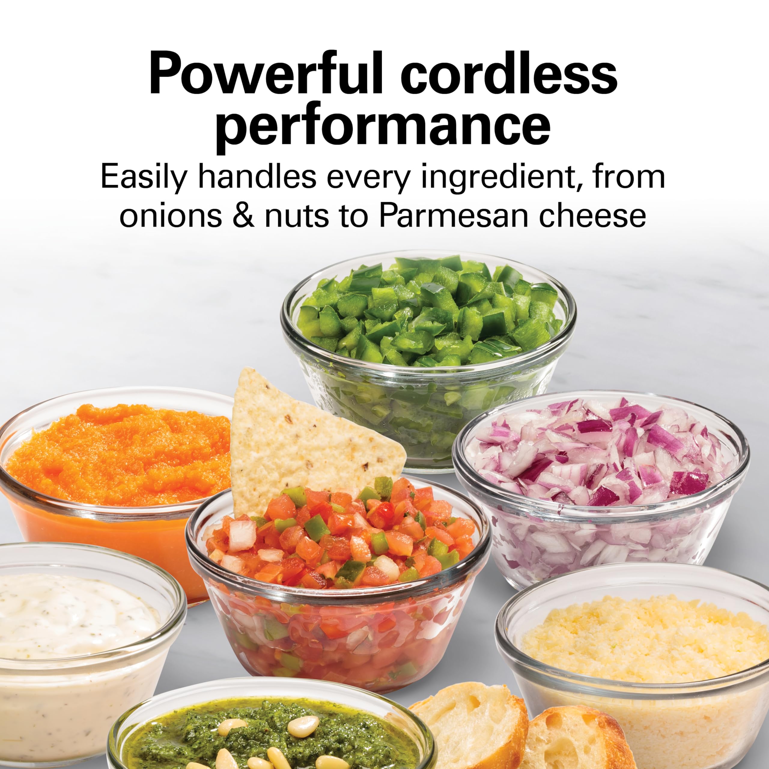 - CHOP ANYWHERE, ANYTIME WITH CORDLESS DESIGN: Enjoy cordless chopping freedom whether you’re standing at your kitchen island or sitting at your breakfast table. With this electric food chopper, there's no need to be near an outlet.